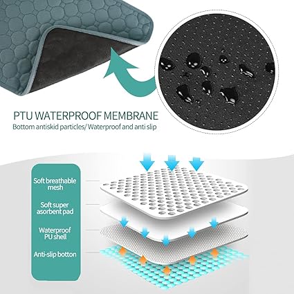 - 【Leak-Proof Designed】:Waterproof oxford fabric with anti-slip design.The edge of the pad is well hemming process,Do not worry about your pets'urine leaking on the floor or on your car seat.There's a leak resistant bottom layer of rubber bulges on the backside of the pad to prevent it from sliding around on floors
